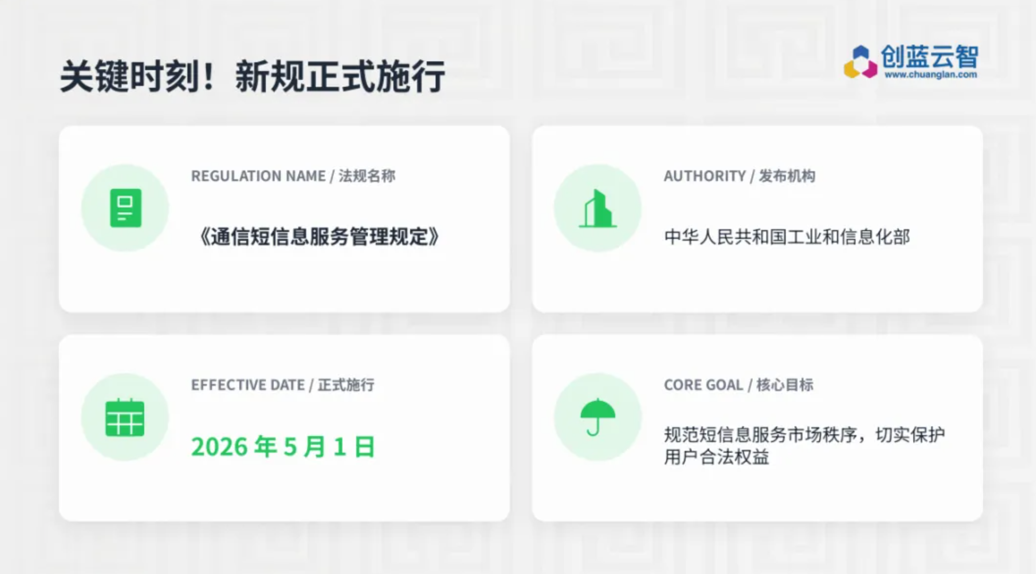 随着2026年5月1日《通信短信息服务管理规定(修订)》(2015年5月19日中华人民共和国工业和信息化部令第31号公布。根据2026年2月9日中华人民共和国工业和信息化部令第74号修订)正式施行的日期临近,行业合规监管的落地执行已进入倒计时。我们注意到,许多客户对于新规中关于“短信签名”的具体要求仍存在疑问。为此,我们特结合最新内部指导文件,为您梳理出一份清晰、可操作的短信签名整改行动指南。