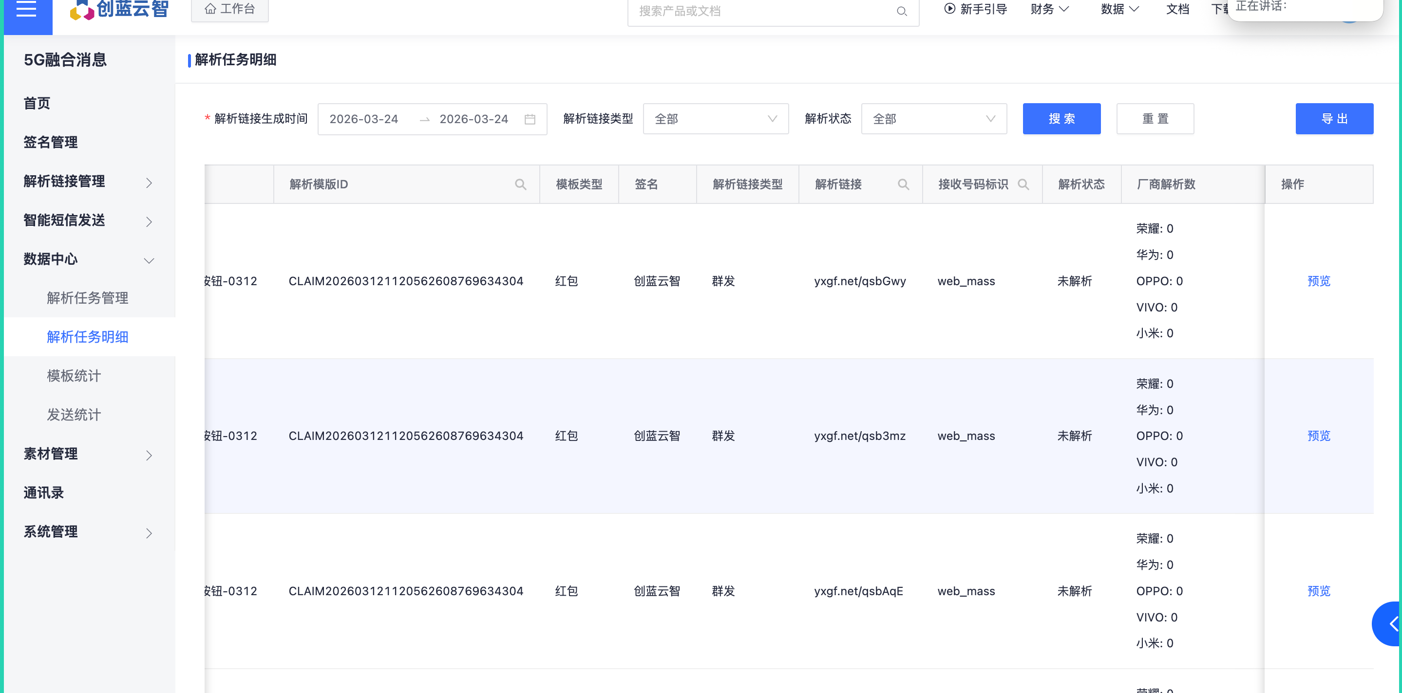 群发短链支持复制链接,个性化短链支持下载所有短链。点击操作列的查看解析明细,可以跳转至该解析任务对应的明细数据进行查看。