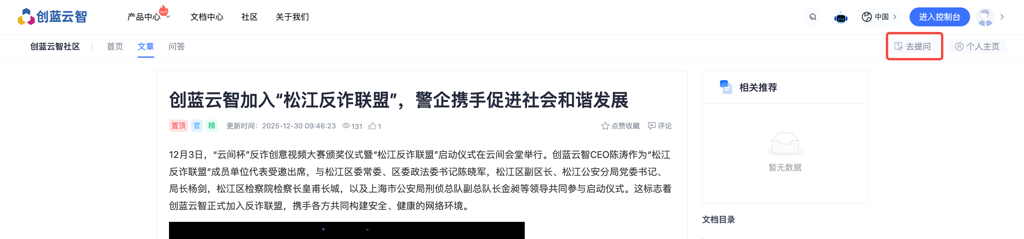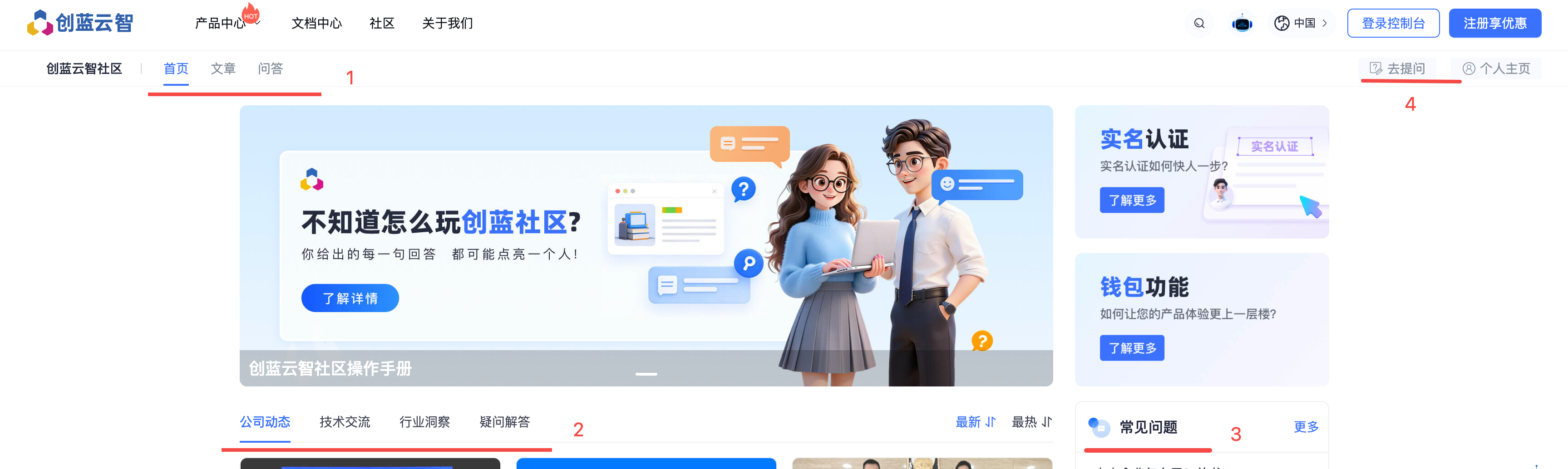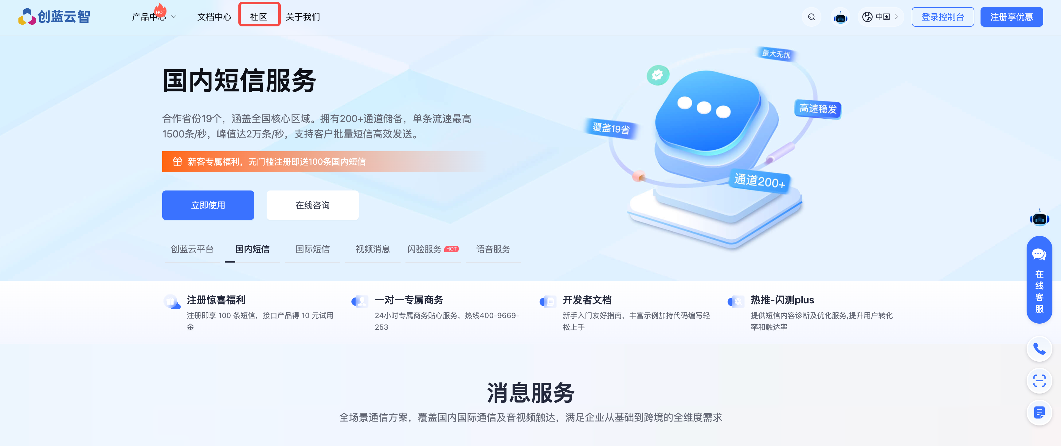 访问创蓝官网首页(chuanglan.com),点击顶部导航栏【社区】入口,即可进入社区首页(未登录状态可直接浏览内容);
