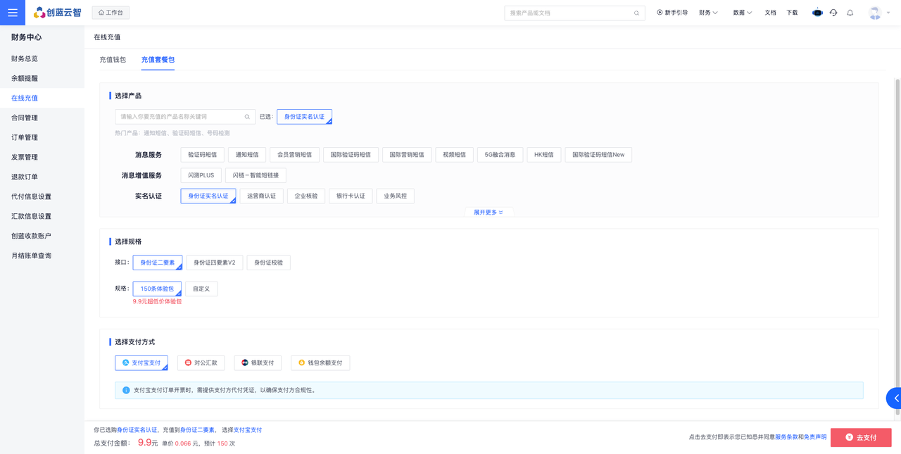 充值套餐包的资金仅限于对应产品使用,若产品暂无套餐包,则需要前往「充值钱包」页面直接充值钱包余额。